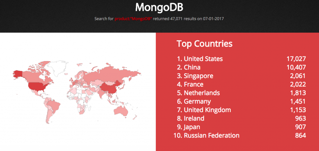 让我们去看一下Shodan上可以看到的有多少个在暴露在公网上而且没有防范的MongoDB?我了个去!4万7千个,还是很触目惊心的(下图来自我刚刚创建的 Shodan关于MongoDB的报表)