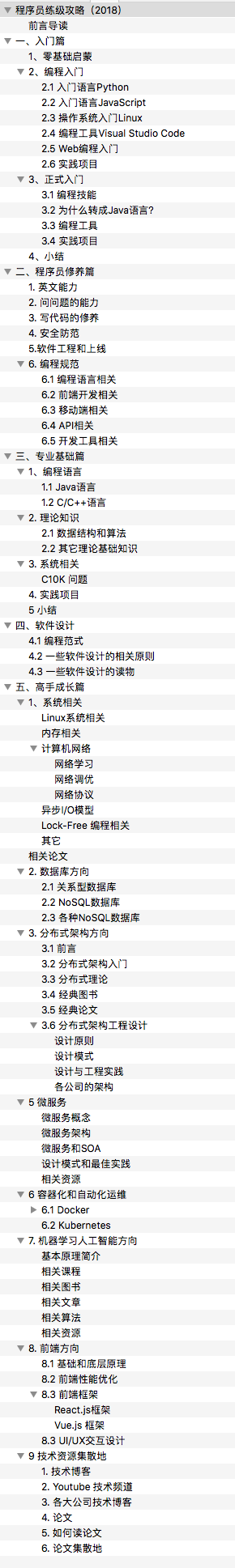 2011年,我在 CoolShell 上发表了 《程序员技术练级攻略》一文,得到了很多人的好评(转载的不算,在我的网站上都有近1000W的访问量了)。并且陆续收到了一些人的反馈,说跟着这篇文章找到了不错的工作。几年过去,也收到了好些邮件和私信,希望我把这篇文章更新一下,因为他们觉得有点落伍了。是的,老实说,抛开这几年技术的更新迭代不说,那篇文章写得也不算特别系统,同时标准也有点低,当时是给一个想要入门的朋友写的,所以,非常有必要从头更新一下《程序员练级攻略》这一主题。