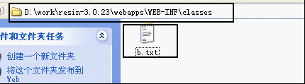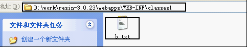 其中的compiling-loader很可能与之有关,遂将其注释掉,一切正常。担心是错觉,于是将compiling-loader的path属性改成:webapps/WEB-INF/classes1,然后运行pathServlet,b.txt位置如下图: